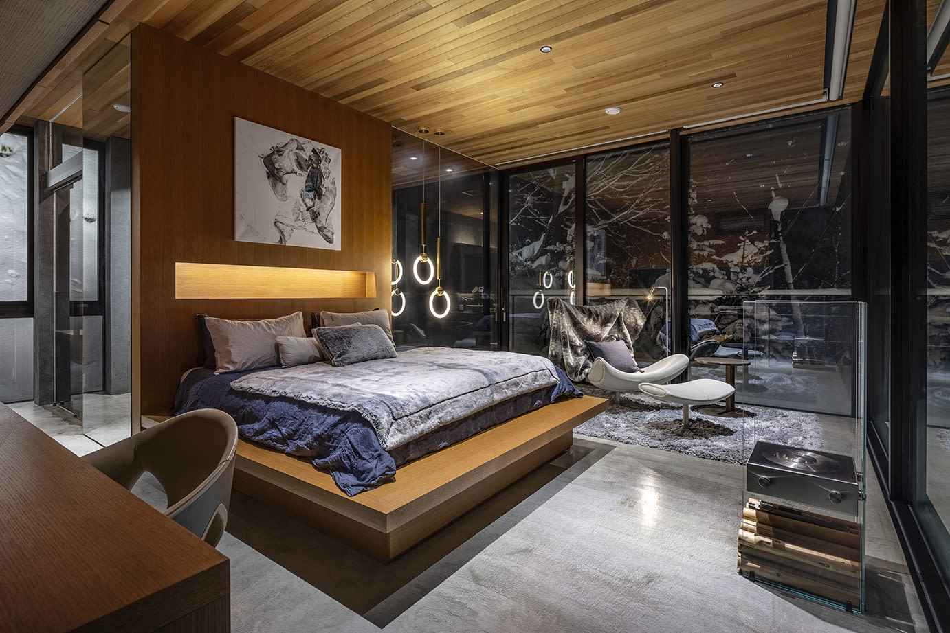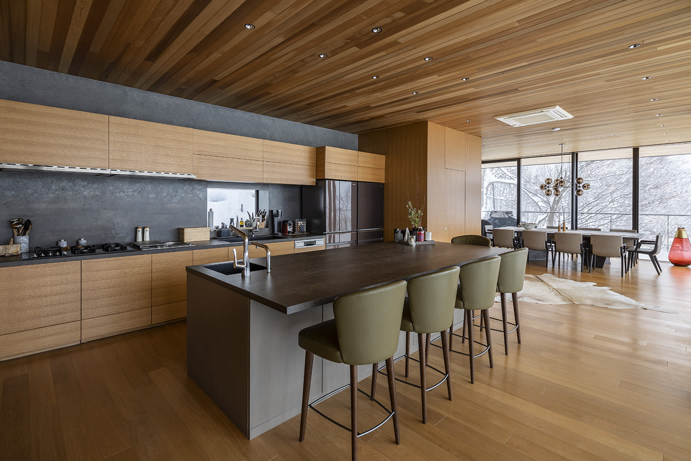 ひらふ地区で最も贅沢な個人住宅のひとつでもあります。家全体を囲む床から天井までの窓は、自然光をたっぷりと取り込むだけではなく、四季とともにうつろう素晴らしい眺望を映し出します。絶妙にしつらえられた家具は近未来的でありながらも居心地の良い山岳の雰囲気を引き立て、潔いほどモダンなデザインが家の内部のすみずみまで満たしています。4つのベッドルームと4つのバスルームを備えたユキカゲは、贅沢なプライベートレジデンスの意味を真に体現しています。