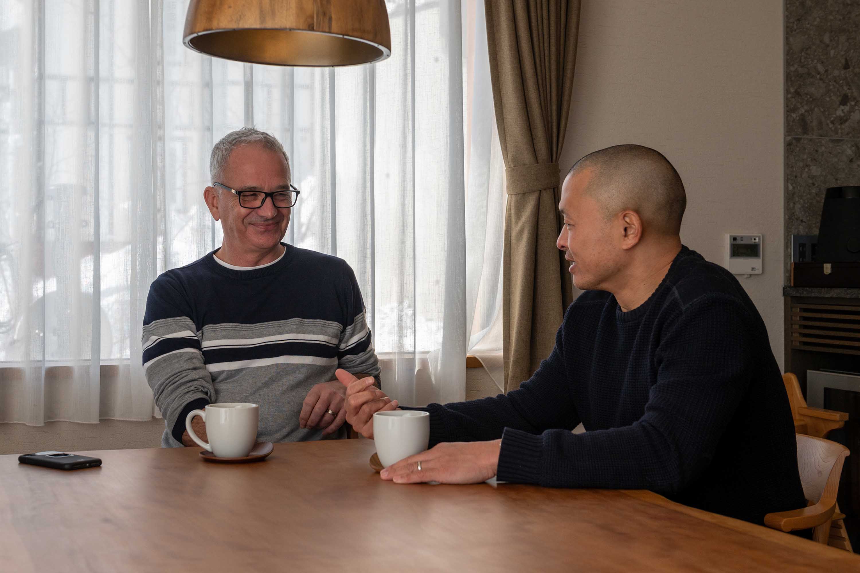 Simon and Michael, Co-CEOs of the H2 Group, discussing the future of the Niseko region.